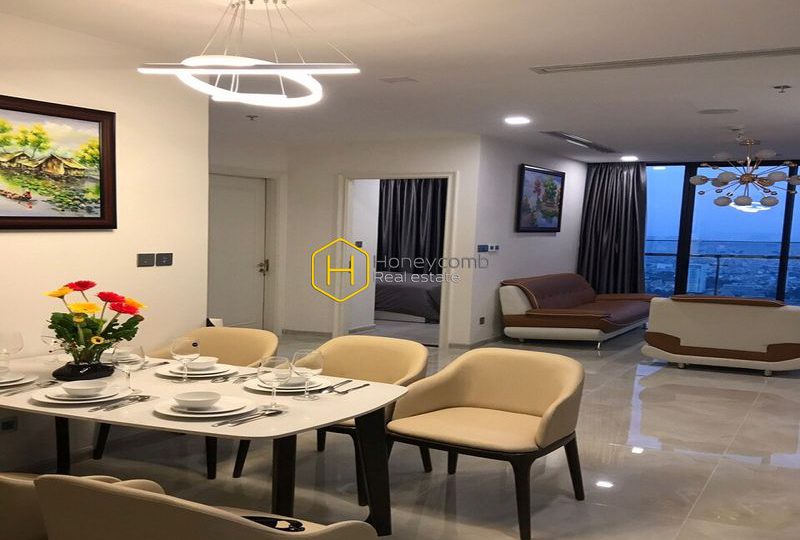We are pleased to inform you that a chic apartment with brilliant accent wall corners in Vinhomes Golden River. This luxurious apartment features a spacious living room, three bedrooms, and two bathrooms with modern fixtures. The apartment also has an elegant balcony overlooking the river, perfect for taking in the stunning views.