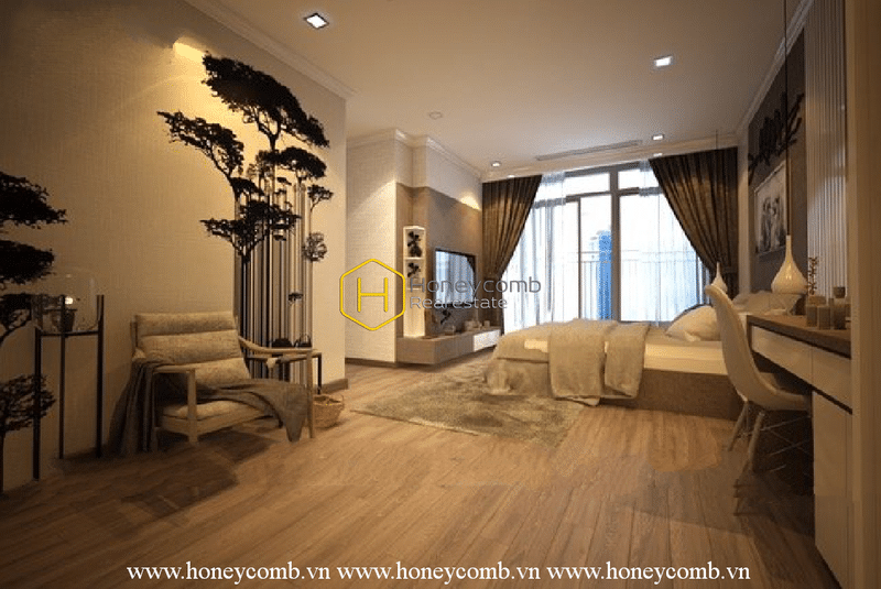 A masterpiece of art seems to be present in this luxury apartment, with unique drawing details and carefully selected interiors. From the living room, kitchen to the bedroom, each place will have natural patterns in black ink on the wall, creating a captivating artistic effect. Not only that, this place is also arranged with European-style sculptures.
