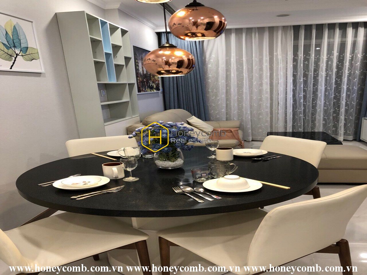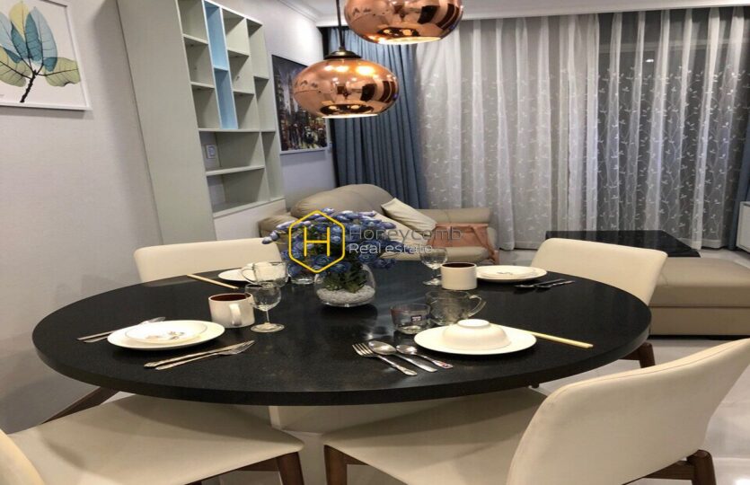 Due to the white color tone combining with green and blue pastel, this apartment carries a sophisticated and elegant design, and there’s always a corner for you to enjoy your life through the facilities in the apartment.