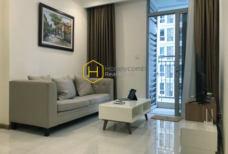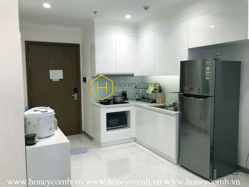 This apartment’s living area is beautifully designed in bright colors, furnished with elegant interior, and decorated with simple but exquisite small details.