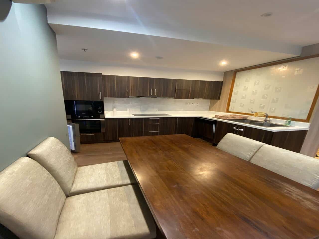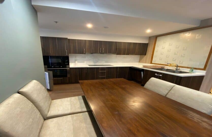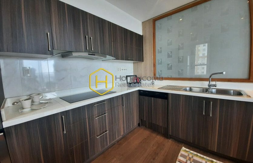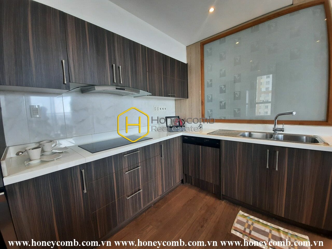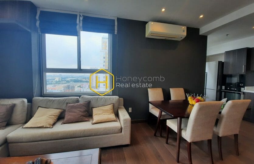 This apartment offers a peaceful and fresh living space by its warm color in design. A true place for relaxation.