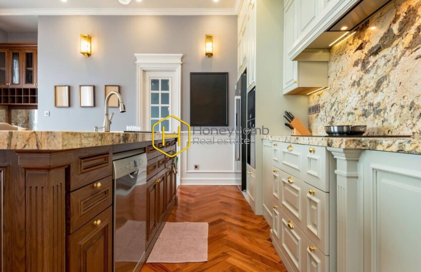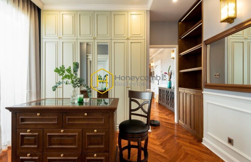 Perched on the highest floor, this incredible penthouse offers the best view and the most exclusive amenities. You will have a true palace in the sky! High ceilings, parquet floors, and Western style decoration as if it’s an royal castle. They harmoniously match with each other, bringing highly artsy vibes throughout the house.