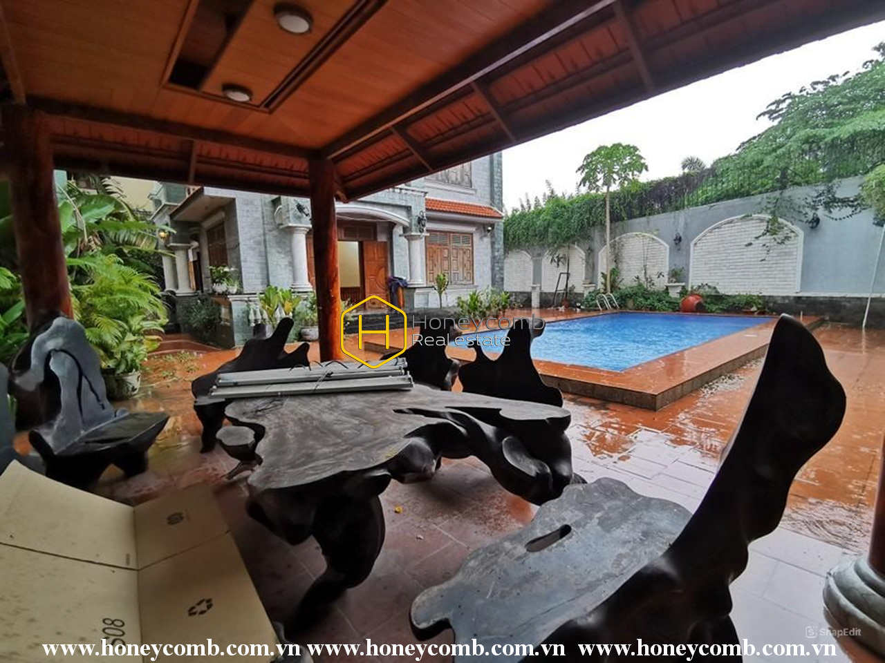 This is a spacious villa with wooden design and a supercool swimming pool. Here we have provided some basic furniture (without cabinets and beds), ensuring you the most modern amenities possible. In addition, this villa is located in an extremely convenient geographical location as well.