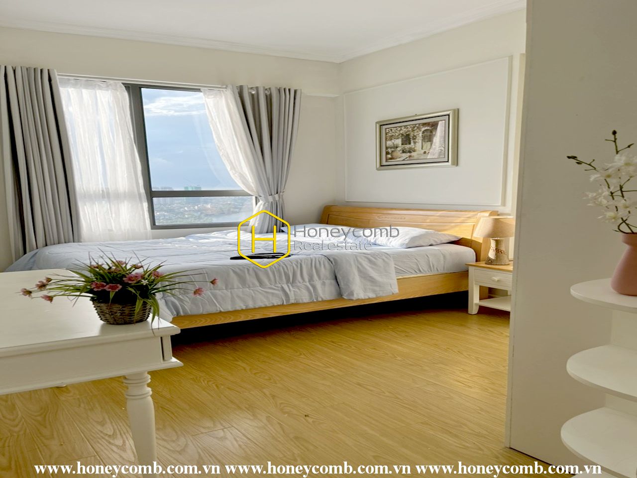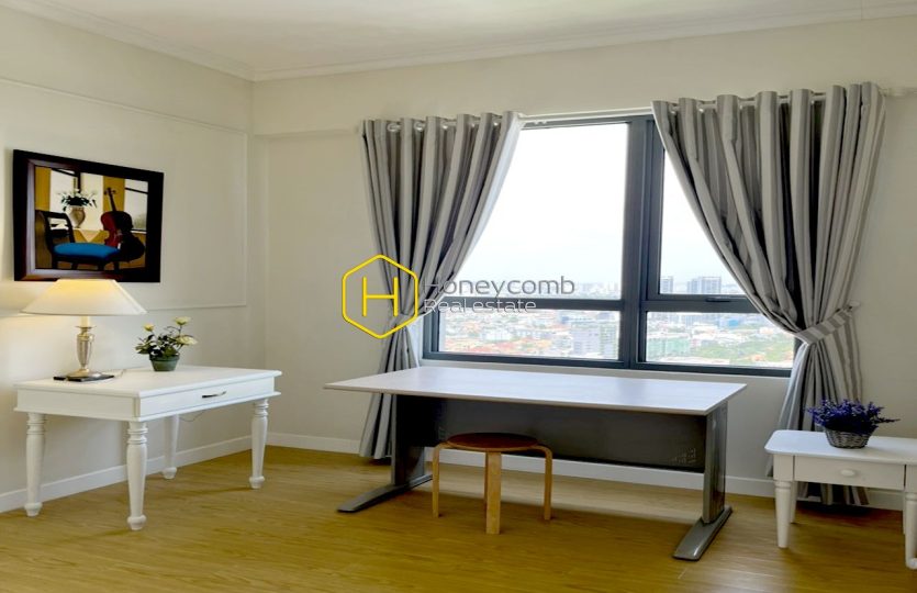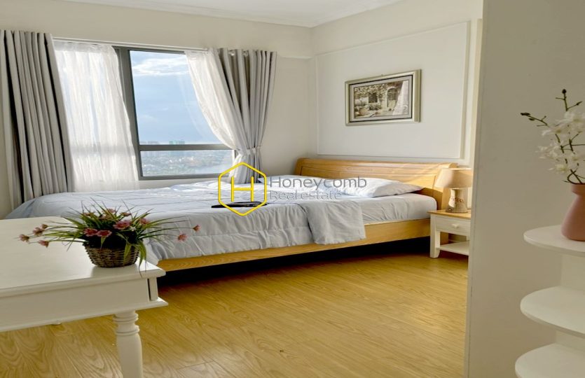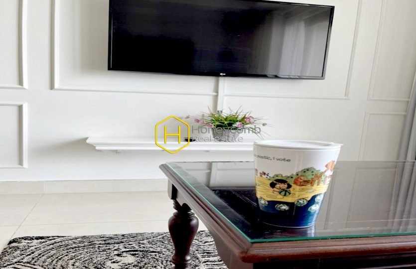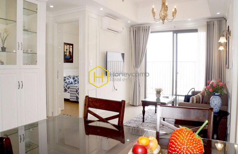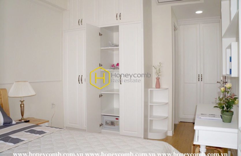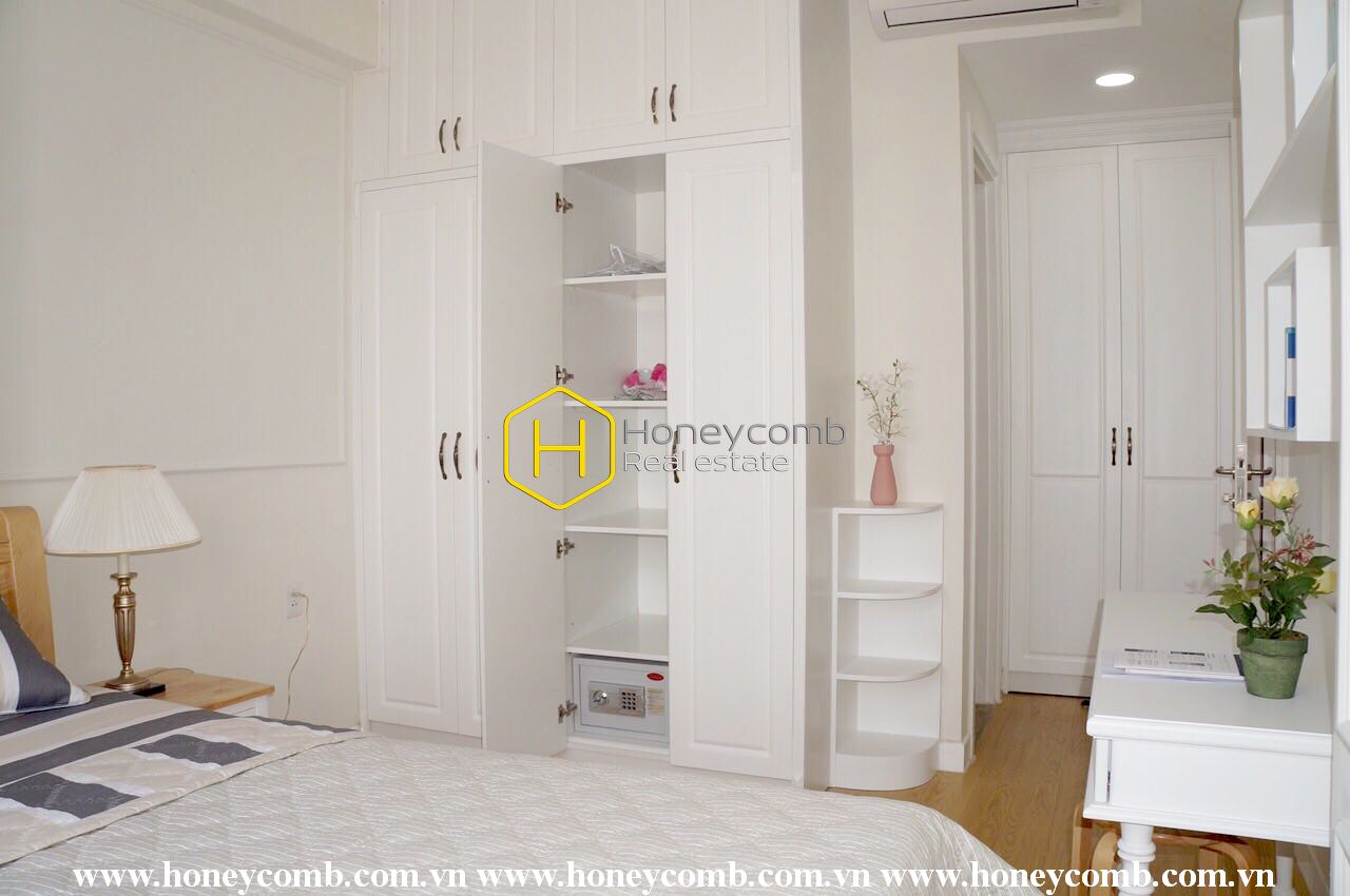 An artistic apartment is designed with a light color and beautifully furnished in classy white furniture. Sophisticated and new. Simple but stylish.