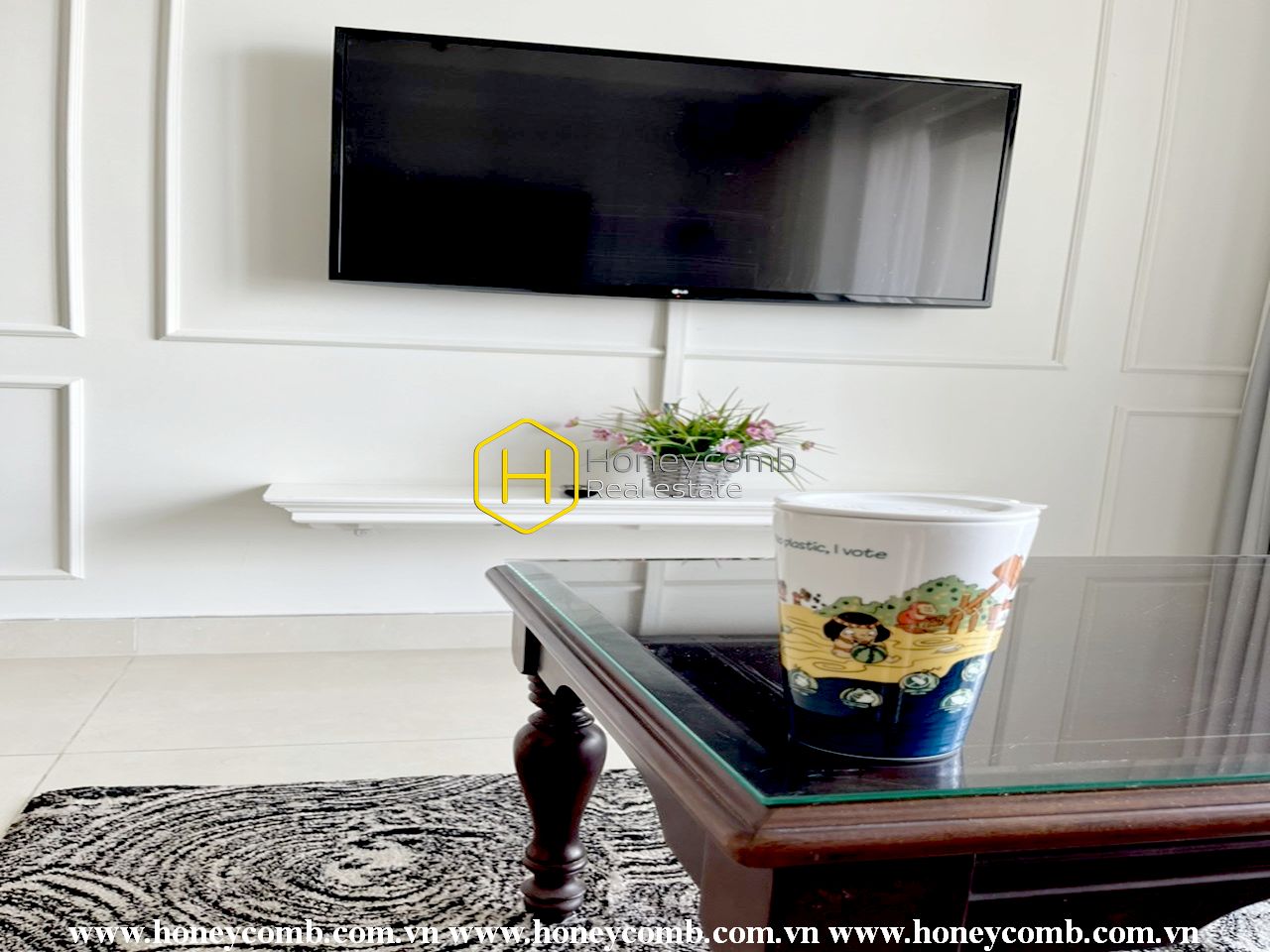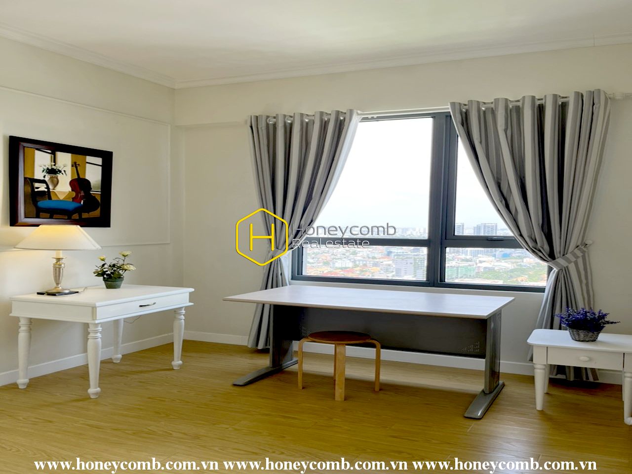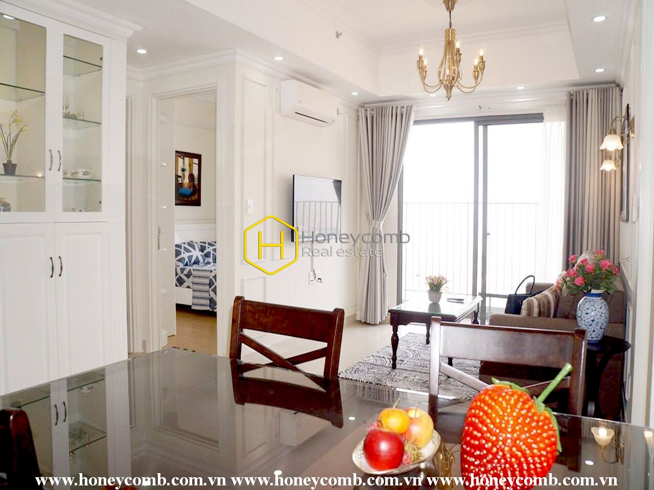 An artistic apartment is designed with a light color and beautifully furnished in classy white furniture. Sophisticated and new. Simple but stylish.