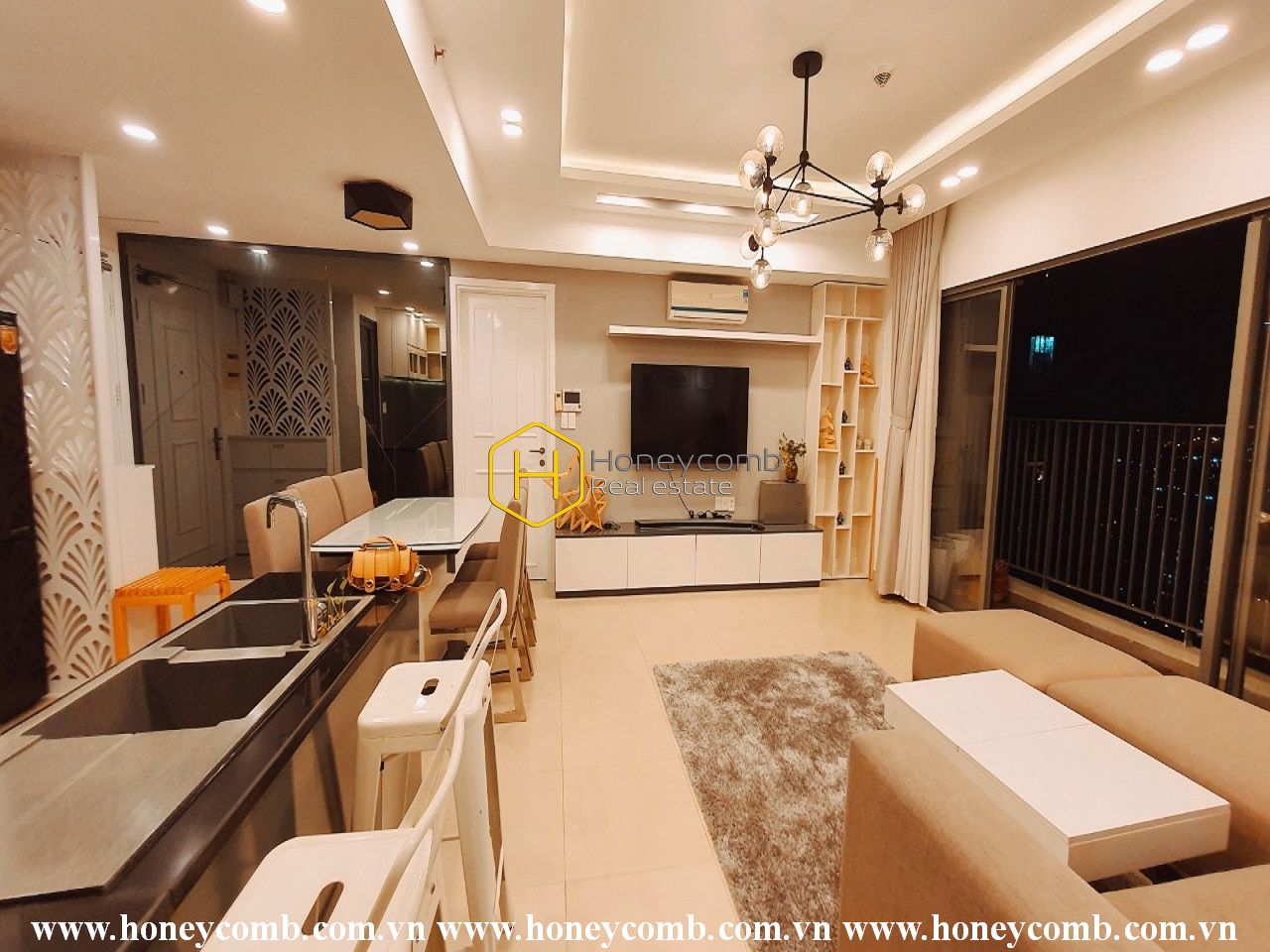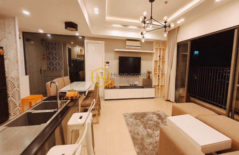 The apartment has been newly renovated and boasts incredible views of the river from the balcony. Additionally, it is conveniently located in Masteri Thao Dien near shopping centers and restaurants.
