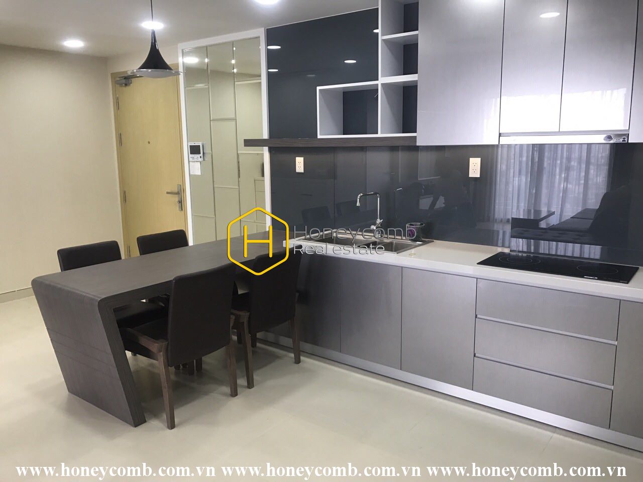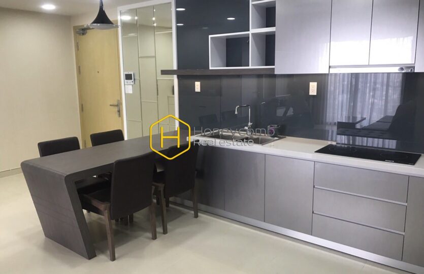 Two bedrooms apartment with high floor and stylish modern kitchen for rent in Masteri Thao Dien