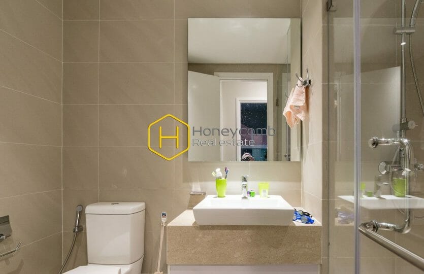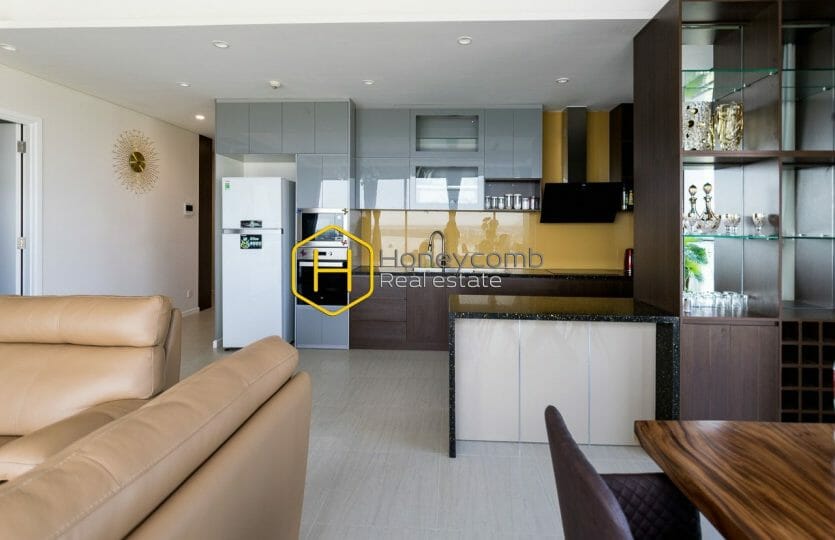 The Warming modern space with soothing lightning in Diamond Island apartment for rent provides residents with a relaxing atmosphere and includes a living room, balcony, and kitchen. Not to mention, it features good lighting that organizes the space with spotlights and tea lights. It’s time to find a new home!